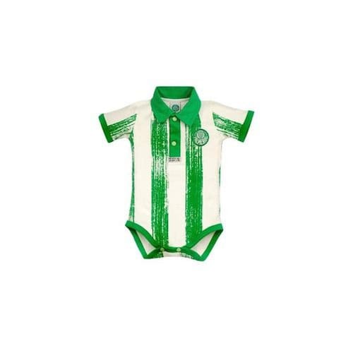 Perfeito para mostrar que a paixão pelo Verdão vem do berço, o body do Palmeiras é produzido em algodão, proporcionando total conforto ao pequeno. Além disso, contém gola polo com abertura e abotoamento, agregando charme à peça, além de maior praticidade. Seu design apresenta o branco como cor predominante e traz faixas verticais verdes, com design diferenciado, como se fossem feitas a pincel. O verde também é visto no punho das mangas, barra e gola. Já o escudo é bordado do lado esquerdo do peito. Por fim, a manga é curta e traz botão entrepernas para melhor ajuste.