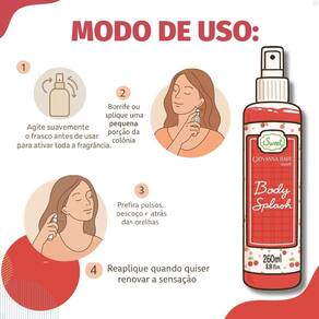 Borrife diretamente sobre o corpo sempre que desejar. Ideal para aplicar após o banho, antes de sair ou para refrescar e renovar o perfume ao longo do dia.
