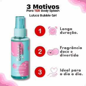 O Body Splash Luluca By Melu You Mist Me Bubble Girl é perfeito para diversas ocasiões. Use-o diariamente após o banho para prolongar a sensação de frescor, antes de sair para um encontro casual, ou sempre que desejar um toque de perfume doce e alegre. É ideal para adolescentes e jovens adultos que buscam uma fragrância divertida e leve para o dia a dia. Leve-o para a academia, viagens ou para o trabalho, garantindo que você esteja sempre perfumada e confiante.