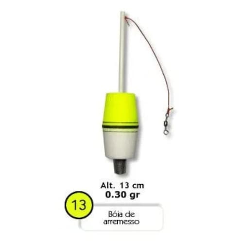 Especificações do Produto: Marca: Boias Barão Modelo: Boia de Arremesso 30 g Comprimento aproximado: 13 cm Peso: 30 g Cores disponíveis: Variadas Indicado para: Pesqueiros e lagos Uso: Arremessos longos; ideal para grandes peixes Marca: Não Informado