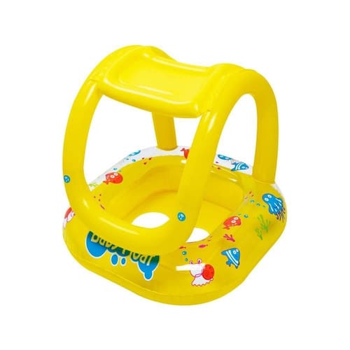 A boia tem assento para que a criança fique sentada e com as perninhas livres, tem proteção nas laterais para segurar, além disso, a boia tem cobertura, assim sua criança não corre o risco de se queimar do raios solares. ============================================================ Contém: 01 Unidade