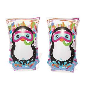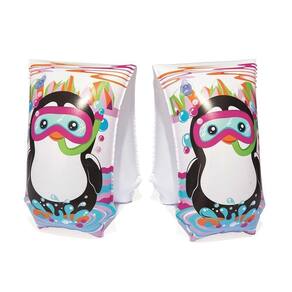 Boia de braço estampada para nadar Bestway indicado paracrianças de 5 a 12 anos com estampa de animais A boia da Bestway é o modeloideal para crianças que estão perdendo o medo de nadar, nas idades de 5 a 12anos e que curtem modelos temáticos, no caso animais!Nessa idade, elas necessitam de um produto prático paraajudar na flutuação e principalmente, perder o medo da água com segurança.Suas estampas exclusivas, fazem referência a dois animais: opinguim e o tubarão, se tornando um modelo muito buscado pelas crianças.O tamanho é de aproximadamente 30 x 15cm, se adaptandoperfeitamente aos braços dos pequenos.Ela possui válvula de segurança e 2 câmaras de ar. Sem contarno material, que é um tipo de vinil super resistente pré-testado.Recomenda-se que esse produto seja utilizado sob a supervisãode um adulto.Informações gerais: Material: Vinil super resistente Medida: 30 x 15cm Indicação: 5-12 anos Contém: 1 par de boias Estampas: Pinguim / Tubarão Marca: Bestway