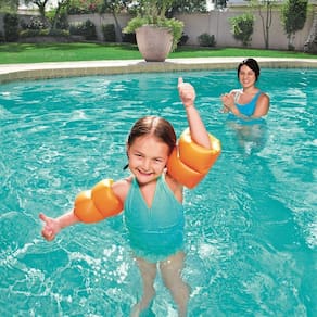 Boia de braço infantil para nadar Bestway indicado paracrianças de 3 a 6 anos de cor lisa A boia da Bestway é o modeloideal para crianças que pretendem aprender a nadar, nas idades de 3 a 6 anos.Nessa idade, elas necessitam de um produto prático paraajudar na flutuação, quando estão em contato com a água.De cor lisa e vibrante, é facilmente identifica e geraempatia por parte das crianças.Seu tamanho é de aproximadamente 20 x 20cm, se adaptandoperfeitamente aos braços dos pequenos.Ela possui 2 câmaras de ar, sendo facilmente inflada por umadulto ou até mesmo uma criança.Recomenda-se que esse produto seja utilizado sob a supervisãode um adulto.Informações gerais: Material: PVC resistente Medida: 20 x 20cm Indicação: 3-6 anos Contém: 1 par de boias Cores: Amarelo / Laranja Marca: Bestway