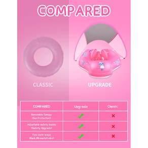 Bóia de natação LAYCOL Baby com dossel solar UPF50+ Flutuadores para segurança na piscina - Adicione cauda sem virar sobre a piscina para bebês de 3 a 36 meses -?Dossel removível?Aproveite o verão a qualquer hora e em qualquer lugar,A bóia para piscina vem com uma cobertura solar UPF50+ respirável e removível para proteger a pele do bebê do sol. -?Material de segurança para bebês?Feito de material de PVC durável à prova de vazamentos, passou pelos padrões CPC, que são os mais altos e rigorosos padrões internacionais de segurança de brinquedos, tornando-os 100% seguros e não tóxicos. -?Proteção de segurança de 5 vezes?5 cintas para proteger a criança. Evitar que o bebê escorregue para fora ou vire para trás. Um clique para desbloquear tudo pode decolar rapidamente da bóia. -?Duas formas de natação?nado peito e nado costas. Ajude bebês e pais a relaxar e aproveitar a experiência de introdução na água. -?Conveniente e simples?Forneça 1 bomba manual para facilitar a inflação. Fácil de inflar e dobrar para armazenamento e transporte. (80% -90% do enchimento é suficiente)