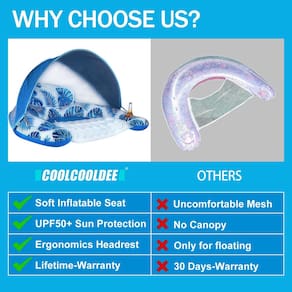 flutuador de piscina com dossel Bóia de piscina para adultos com sombra - Cobertura ajustável: a cobertura solar removível oferece um local de sombra com proteção solar UPF50 ou mais e pode ser dobrada para trás quando você quiser pegar alguns raios. A malha atrás da cobertura é respirável - Cadeira flutuante de piscina: o assento repousa na água que mantém seu corpo abaixo da superfície da água para mantê-lo confortavelmente fresco. Descanso de braço e encosto solidário o descanso oferece maior conforto e estabilidade na água - Porta-copos embutidos: a espreguiçadeira inflável está equipada com porta-copos. Você sempre pode tomar sua bebida como quiser aproveite o tempo no flutuador — Extra grande: o tamanho inflado é 47,5” x 37,5” x 27,5” (120 cm x 95 cm x 70 cm), comporta até mais de 300 libras. Perfeito para adultos — Inclui: cadeira de piscina* 1, dossel removível* 1, porta-copos embutido*2, embalagem em caixa colorida*1