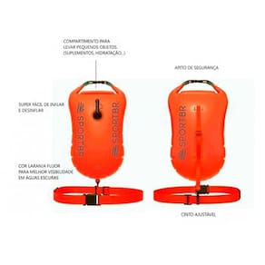 Bóia E Sinalizador Para Natação Mar Aberto Laranja SportbrNade com segurança. Bóia de sinalização para nadar, com faixa e apito de segurança da marca SPORTBR. A bóia da SPORTBR de 15L é altamente recomendada para quem vai nadar em águas abertas, rios ou lagos.Durante o exercício podem ocorrer câimbras, lesões, mal estar, ... A bóia serve para dar um suporte e também garante maior visibilidade do nadador durante o exercício.Especificações:- cor laranja para melhor visibilidade em águas mais escuras.- compartimento para levar pequenos objetos. ( suplementos, hidratação ...)- apito de segurança- cinto ajustável- câmara inflável separada da área de armazenamento, proporcionando assim mais flutuabilidade.- Super fácil de inflar e desinflar.
