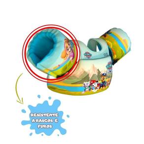 CARACTERÍSTICAS: - Indicado para crianças de 0 a 7 anos até 25kg; - Não sai do braço da criança; - Alta resistência: NÂO FURA! - Sistema de trava com engate rápido 40mm - Alta segurança; - Cinto ajustável e altamente resistente; - Permite livre mobilidade de braços e pernas; - Auxília na natação da crianças
