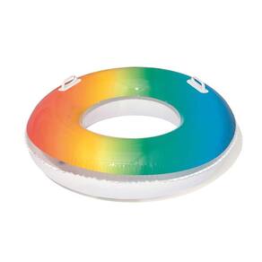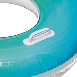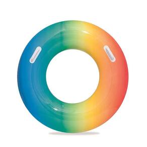 Ela possui válvula de segurança e conta com um acabamento degradê, justamente com as cores do arco-íris. Seu material é de alta resistência, tornando-se uma boia de alta durabilidade.