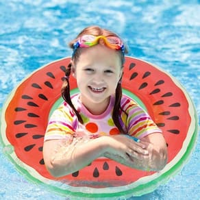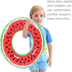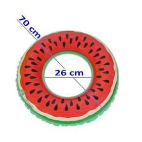 Boia infantil inflavel de cintura melancia 70/74cm A boia inflável com design de melancia é perfeita para uso em piscinas, praias, mares, luaus, festas e decorações de eventos aquáticos.
