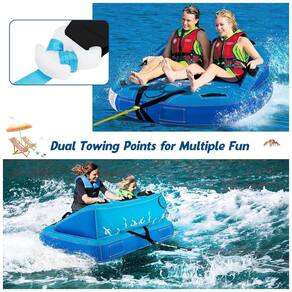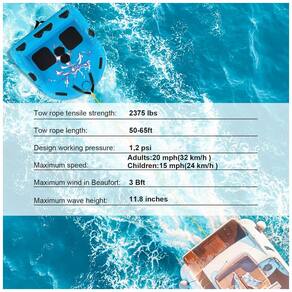 Tamanho maior com capacidade para 2 pessoas: Este tubo rebocável tem uma forte capacidade de peso de até 280 kg, o que permite que 2 passageiros naveguem ao mesmo tempo. O encosto extra alto e o assento grande aumentam a estabilidade e o equilíbrio. Além disso, os tubos para puxar os barcos podem ser s para adultos ou jovens passearem simultaneamente.