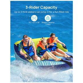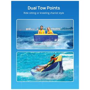 Quick Hook Ups 1 conector de reboque no ponto de reboque frontal permite que você conecte com facilidade e segurança seu tubo de água rebocável à corda. Pontos de reboque duplos tubo de água para 3 pessoas com pontos de reboque dianteiros e traseiros oferecem várias posições de pilotagem, você pode andar na posição sentada ou andar de carruagem para adicionar uma nova dimensão de emoção na água. Construção reforçada A câmara de ar de PVC resistente é totalmente coberta com nylon costurado duplo para garantir maior conforto e anos de uso A válvula à prova de vazamentos 2 em 1 bloqueia firmemente o ar para oferecer firmeza duradoura. Confortável e Apresentando uma capa de nylon premium, juntamente com assentos de EVA e almofadas de joelho para proporcionar uma experiência de pilotagem mais confortável várias alças cheias de espuma estão bem posicionadas para uma aderência segura e antiderrapante Marca: Não Informado