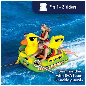 Assento de selim para 2 pilotos com assento de almofada de espuma EVA e uma cauda macia personalizada para um passeio no rebocável inflável. Grandes almofadas de espuma EVA no convés para os side riders. Sistema de pára choques lateral para manter os pilotos no tubo para passeios extremos. Rebocável de 1 a 3 pessoas este tubo rebocável de luxo personalizado apresenta um tema de design wow Big ducky, assento de sela , bem como uma grande área de deck em forma de asa para 1, 2 ou 3 pilotos para sentar, ficar de pé, ajoelhar ou deitar baixa. Design de cores de alta visibilidade O pato inflável tem um design peculiar e único. A cor de alta visibilidade com gráficos de outdoor cria emoção para os pilotos, mas também permite que todos na água saibam que você está lá. Construção robusta este tubo Duck possui uma construção de sistema de reboque de 3 pontos para serviço pesado, com membrana larga. Conector EZ TOW moldado embutido para conexão do ponto de reboque EZ. A construção de nylon resistente oferece estabilidade durante o passeio mais difícil. Tipo de ajuste ajuste universal Marca: Não Informado