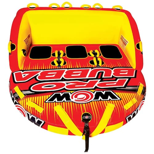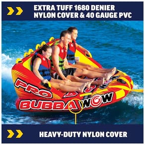 CAPACIDADE O Super Bubba Pro é um piloto de 1 3 rebocável ASSENTO DO CONVÉS O assento do convés vem com encosto e paredes laterais extra altos. O encosto extra alto mantém a viagem contínua em passeios extra rápidos e saltitantes REBOCÁVEL PARA 3 PESSOAS O tubo rebocável de água possui sistema de reboque duplo reforçado, assento de espuma EVA e joelheiras, 12 alças duplas de espuma e 6 alças planas CONSTRUÇÃO DE TUBOS DE BARCO PARA SERVIÇOS PESADOS Os esportes aquáticos rebocáveis têm bexiga de PVC calibre 40 super resistente e capa de nylon 1680D INFLAÇÃO E DEFLAÇÃO RÁPIDAS O tubo inflável possui válvulas de velocidade para uma inflação e desinsuflação fácil e rápida Possui tampas de válvula com zíper. Tamanho inflado 1.87 x 1.77 X Marca: Não Informado