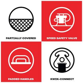 Tubo condutor 1 4 para passeios de barco e esportes aquáticos Parcialmente coberto Cobertura parcial de náilon para serviços pesados Válvula de segurança de velocidade Para inflar e esvaziar rápido e fácil Alças acolchoadas alças almofadadas antiderrapantes proporcionando conforto e estabilidade Kwik Connect Kwik Connect patenteado do Airhead para conexão de corda rápida e fácil Marca: Não Informado