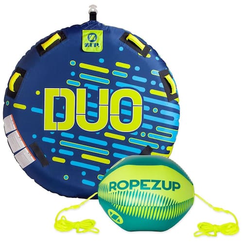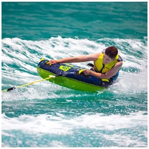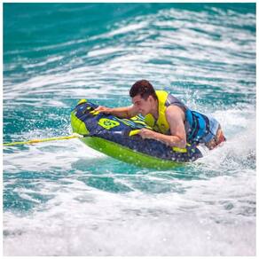 Capacidade para até 2 Passageiros: Perfeito para 1 adulto ou 2 crianças pequenas, com capacidade máxima de peso de 77 kg (170 libras). Design Funcional e Seguro: Possui um ponto de reboque, 4 alças acolchoadas para maior conforto e segurança, além de alças de apoio resistentes que facilitam o embarque. Diversão Garantida: Relaxe em um passeio tranquilo ou desafie as ondas com este tubo de alta performance, adequado para surfistas de todas as idades. Construção Resistente: Fabricado em PVC K-80 de 0,66 mm, revestido com nylon de alta durabilidade 420D. Mede 145 cm x 145 cm (57" x 57") quando desinflado. Bola de Assistência RopeZUP Incluída: Mantém a corda fora da água, reduzindo o arrasto e melhorando o desempenho, com corda de 18,3 m (60 pés) de comprimento e 1,27 cm (1/2") de diâmetro. Transforme suas aventuras aquáticas com este conjunto de tubo rebocável projetado para máxima diversão e segurança.