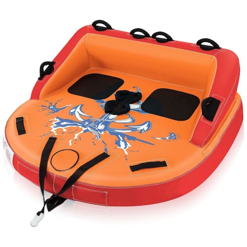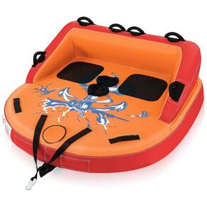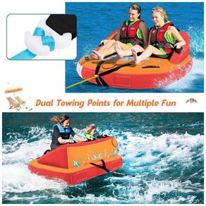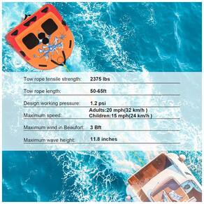 Tamanho maior e capacidade para 2 pessoas: Este tubo rebocável tem capacidade para até 155 kg, permitindo que 2 passageiros naveguem juntos ao mesmo tempo. O encosto alto e o assento espaçoso garantem maior estabilidade e equilíbrio. Pode ser utilizado tanto por adultos quanto por jovens, proporcionando diversão para toda a família.
