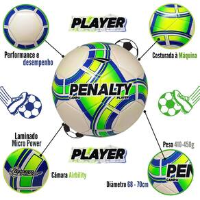 A Bola de Futebol de Campo Penalty Player XXIII conta com Câmara Arbility que é feita com borracha butílica, possuindo sistema de balanceamento com resistência a retenção de ar, e ótima durabilidade.