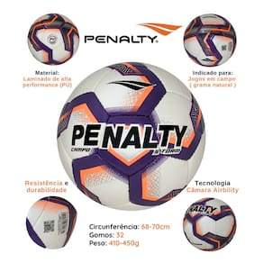 Alguns diferencias técnicos: A Bola Campo Penalty Storm XXIII foi desenvolvida com tecnologia Câmara Airbility, sistema de balanceamento que garante ótima retenção dear. Conta também com miolo removível que facilita no momento da lubrificação e substituição caso seja necessária.