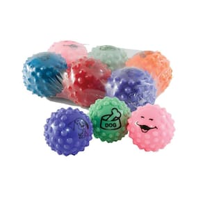 Bola Cravo De Borracha Mamona Brinquedo Pet 06 Un Antialérgica, confeccionada com material emborrachado. Produto 100% nacional. Certificado de inspeção INMETRO. Lavável. Contém: 06 Unidades. Cores variadas - não é possível escolher a cor Diâmetro: 7,5 cm. Cravos emborrachados pela superfície da bola. Produzido com material emborrachado. Peso: 80 gr - cada