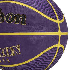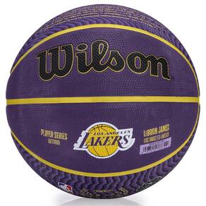 - Detalhamento: Bola tamanho 7, canaletas profundas para melhor agarre, escrita Wilson e Lebron James em destaque em uma das faces e na outra a combinação da escrita da Wilson com o logo do time Los Angeles Lakers. Enviada murcha;