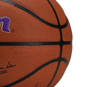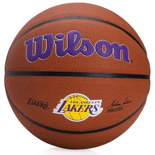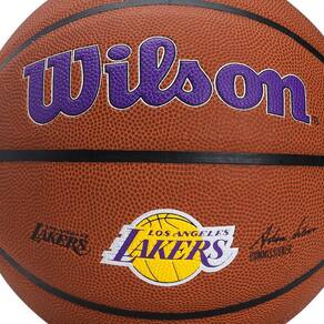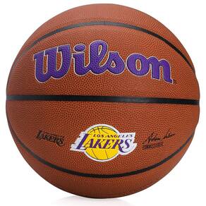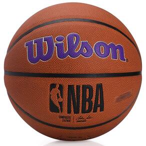 - Detalhamento: Bola tamanho 7, canaletas profundas para melhor agarre, escrita Wilson e NBA em destaque em uma das faces nas cores roxa e preta respectivamente e na outra a combinação da escrita da Wilson com o logo do time Los Angeles Lakers. É enviada murcha;