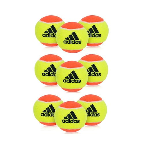 - Detalhamento: 3 pacotes com 3 bolas cada (total 9 bolas), cor amarelo e laranja, escrita Adidas em um lado e com aprovação da ITF do outro lado da bola;