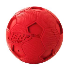Nerf Dog Brinquedo para cães bola de futebol com Squeaker interativo, leve, durável e resistente à água, 10 cm, para raças médias/grandes, unidade única, vermelho - Os materiais de qualidade Nerf Tough Nerf tornam nosso brinquedo de bola de futebol perfeito para buscar e ensinar novos truques ao seu cão - Fácil de manusear. O padrão exclusivo do lado de fora cria sulcos que facilitam a coleta e a busca do seu cão, enquanto a textura hexagonal na parte externa facilita a aderência e o arremesso dos seres humanos - Feito para durar leve, durável e resistente ao clima e à água - Para raças médias e grandes, a bola de 10 cm é ideal para raças médias e grandes - Segurança em primeiro lugar. Projetado com a segurança do seu cão em mente, cada um dos nossos brinquedos para cães é testado para garantir infinitas horas de diversão em família