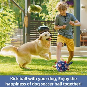 - Brinquedo de bola de cachorro durável: cumprindo exatamente o mesmo padrão dos brinquedos infantis, a bola para cães é feita de poliuretano premium que é o material da bola de futebol padrão para que possa ser chutada e quicada também. Observe que nossas bolas grandes de futebol para cães são adequadas para cães de 9 a 18 kg, o animal de estimação para cães grandes precisa escolher o nosso grande.