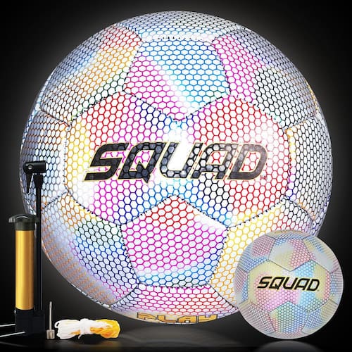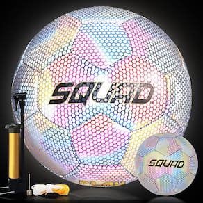 Bola de futebol reflexiva – O material reflexivo de nova geração é utilizado nesta bola de futebol holográfica, fazendo com que a bola de futebol tenha um melhor efeito holográfico reflexivo e brilhante. O efeito holográfico perfeito da bola de futebol é tirar fotos ou vídeos com o flash da câmera ligado. A bola de futebol holográfica com efeito de reflexão é uma bola de futebol de tamanho oficial que aparece holograficamente ou brilha em fotos ou vídeos quando o flash da câmera do telefone está ligado. 2 métodos de iluminação câmera de celular com flash por refração. Presente perfeito Este é um ótimo presente para crianças, amigos e familiares apaixonados por futebol. O pacote inclui 1 bola de futebol refletiva Especificação: Tipo: Bola de futebol refletiva Material: Forro de borracha + Couro PU refletivo Tamanho: Tamanho 5 - ?Efeito reflexivo que chama os olhos – Esta bola de futebol não é apenas uma bola normal, é uma bola holográfica que brilha sob uma lanterna ou o flash do seu telefone. Fica incrível em fotos e vídeos, especialmente à noite. Você vai adorar como ela brilha e brilha. - 👍 Fácil de usar e reabastecer – a bola de futebol reflexiva vem com um airbag de borracha flexível que mantém boa elasticidade e desempenho. Você pode facilmente encher a bola de futebol com uma bomba padrão quando recebê-la. Você também pode ajustar a pressão do ar de acordo com sua preferência e estilo de jogo. - Fresca e exclusiva: esta bola de futebol tem um efeito reflexivo que a faz se destacar da multidão. É uma ótima maneira de mostrar sua personalidade e estilo, e impressionar seus amigos e seguidores nas redes sociais. Você receberá muitos elogios e gostos. - Tamanho oficial 5 – Esta bola de futebol tem o tamanho padrão para adultos e crianças e tem a mesma elasticidade de uma bola de jogo. Você pode usá-lo para praticar suas habilidades de futebol, jogar partidas ou se divertir com seus amigos e familiares. - 🎁 Ideia de presente perfeita – Se você está procurando um presente especial e prático para um fã de futebol, esta bola de futebol é uma ótima escolha. Não é apenas uma bola de futebol, mas também um brinquedo que pode ser jogado à noite. É uma maneira divertida e criativa de aproveitar o futebol e criar memórias inesquecíveis. Peça o seu hoje!