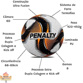 Prepare-se para elevar o nível das suas partidas de Society com a Bola Society Penalty Líder, a escolha dos craques que buscam performance, precisão e durabilidade. Desenvolvida com tecnologia de ponta e materiais de alta qualidade, esta bola proporciona uma experiência de jogo superior, garantindo passes precisos, chutes potentes e controle total da partida.Essa Bola Society Penalty Líder é a aliada perfeita para os amantes do futebol Society. Seu design moderno e construção robusta garantem alta performance em qualquer gramado sintético. Com tamanho e peso oficiais, ela oferece o toque ideal para dominar a bola e executar jogadas incríveis.Benefícios:Controle AbsolutoDurabilidadeMenor Absorção de ÁguaPerformanceAlguns diferenciais técnicos:A Bola Society Penalty Líder possui construção Ultra Fusion, que garante menor absorção de água, mantendo o desempenho em qualquer condição climática. A tecnologia Ultra Fusion garante união termofundida dos gomos, oferecendo maior resistência e durabilidade.Além da Câmara 6D que dá equilíbrio total e trajetória precisa. Essa tecnologia, com 6 discos posicionados simetricamente, proporciona estabilidade e controle da bola durante os passes e chutes.A Bola Society Penalty Líder, possui tecnologia Kick Off, que garante maior impulsão e velocidade nos chutes. Esse processo extra oferece maior resposta da bola nos chutes, proporcionando mais potência e precisão.CaracterísticasPeso: 420-450g