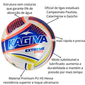 A Kagiva F5 Extreme PRO 2026 é a bola oficial de diversas ligas estaduais e foi projetada para quem busca alto desempenho e precisão absoluta no futsal. Com design moderno e tecnologia de ponta, ela traduz a intensidade e a velocidade do jogo, oferecendo controle superior em cada jogada.