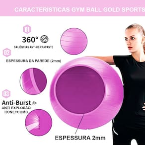 A Bola  de Ginástica Gold Sports Pro 55cm Com Bomba de Encher Anti Explosão é ideal tanto para exercícios de reabilitação quanto para atividades de condicionamento físico. Pode ser usada individualmente ou em par no treinamento de diversos esportes. Os exercícios contribuem para o aumento daforça, agilidade e velocidade. Suporta até 300kg e é fabricada em material latex com sistema anti estouro.