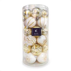 Este elegante kit de bolas de Natal contém 30 unidades, perfeitas para adicionar um toque especial e sofisticado à sua decoração natalina. Composto por 6 modelos diferentes, ele proporciona variedade e charme ao seu ambiente. 6 Bolas Brancas com Desenhos em Glitter Dourado: Três modelos distintos, cada um com padrões únicos em glitter dourado, que brilham e refletem a luz, criando um efeito mágico. Estes desenhos variam entre motivos clássicos, proporcionando um toque de delicadeza e requinte. 6 Bolas Douradas com Desenhos em Branco: Três modelos diferentes com acabamento fosco ou brilhante, decorados com desenhos em branco que criam um contraste harmonioso e elegante. Cada bola possui um diâmetro de 6 cm, um tamanho ideal para se destacar na decoração, sem sobrecarregar a árvore. Todas as bolas vêm com uma linha resistente e prática para serem penduradas, facilitando a aplicação em qualquer arranjo natalino. Este kit é perfeito para quem busca diversidade e elegância em sua decoração, trazendo a essência e o brilho do Natal para o seu lar. Marca: Não Informado