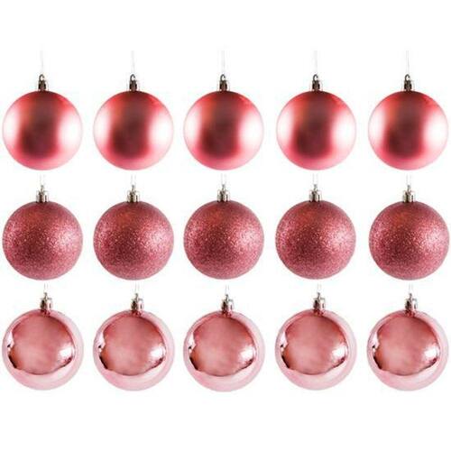 Tamanho aproximado do enfeite: 4cm de Tamanho aproximado da embalagem: a:xl:cm Peso aproximado: g Tipo de produto: bola de natal mista fosca/lisa/glitter com 30 pecas Cor: rose Composição: plastico