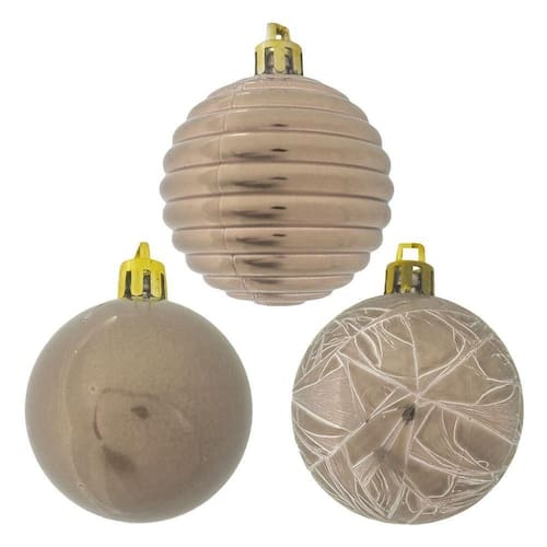 Conteúdo: 20 unidades de Bola de Natal Kit Misto para Árvore Rose Gold