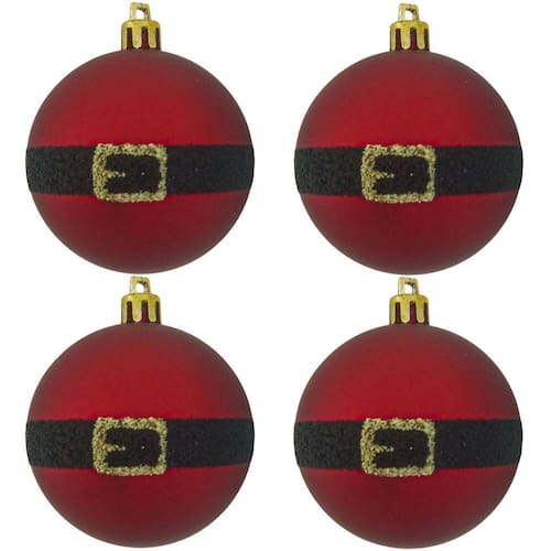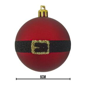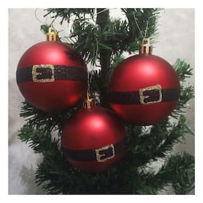 A Bola de Natal Papai Noel para Árvore de 6 cm com 9 Unidades é essencial para decorar sua casa, sua árvore de Natal, sua guirlanda, varanda e demais elementos natalinos que desejar! Esse modelo de kit acompanha 9 bolinhas de um mesmo modelo que se trata de uma bolinha vermelha fosca com, no centro da bolinha, um cinto em glitter preto ao redor dela toda com o fecho em glitter dourado, representando então o Papai Noel!