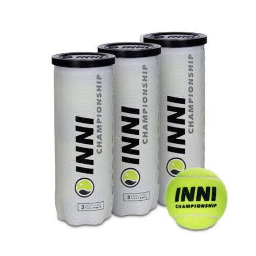 Bola de Tênis Inni Championship Pack c/3 Tubos A bola de tênis Championship é ideal para tenistas de todos os níveis. Qualidade e desempenho tão bom quanto às melhores bolas da mesma categoria do mercado, utiliza feltro sintético agulhado, do fabricante americano Textech. Desenvolvidas com alta tecnologia, a bola de tênis INNI Championship possui ótima resistência à deformação, além de baixo desgaste abrasivo. Uma bola de alta durabilidade, indicada para todos os tipos de quadra. Composição: borracha natural e feltro sintético agulhado. Não expor ao calor excessivo e não molhar o produto. Embalagem 100% reciclável. Validade indeterminada, produto não perecível. A abertura do tubo inicia o processo de despressurização das bolas. Ean: 7359350000172