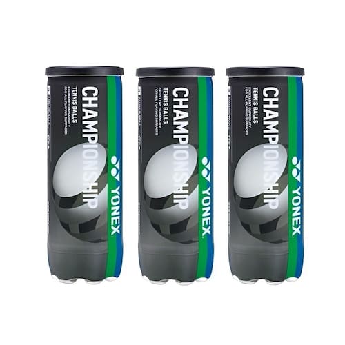 Bola de Tênis Yonex Championship - 3 TubosEleve seu jogo com a Bola de Tênis Yonex Championship. Perfeitas para treinos e torneios, essas bolas oferecem quique e durabilidade consistentes. Projetadas para jogadores de todos os níveis, elas oferecem desempenho confiável em qualquer tipo de quadra, fazendo com que cada batida pareça uma vitória.- Detalhamento: 3 Tubos com 3 bolas cada (total de 9 bolas);- Origem: Importado.