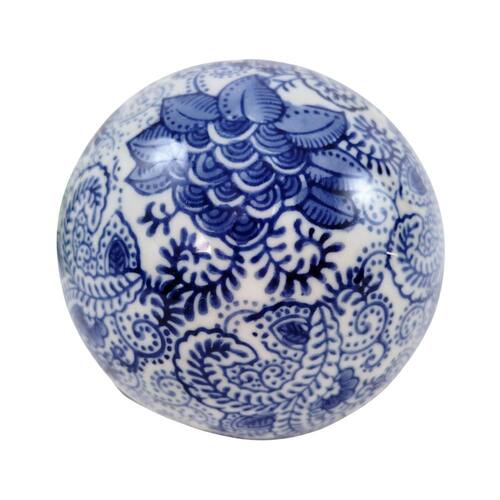 Bola Decorativa Porcelana Arabesco Azul E Branca 10Cm
