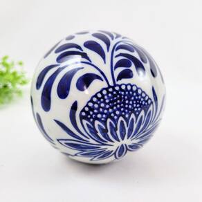 Bola Decorativa Porcelana Floral Azul e Branca 10cm Bola Decorativa de Porcelana Floral Branca e Azul Inigual Decor A Bola Decorativa de Porcelana Floral Branca e Azul é uma peça clássica que traz sofisticação e charme atemporal à decoração. Com acabamento em porcelana de alta qualidade, apresenta estampa floral em azul sobre fundo branco, inspirada na estética oriental. Ideal para compor bandejas decorativas, prateleiras ou mesas, a peça se destaca tanto individualmente quanto em composições com outras bolas decorativas. Seu design refinado valoriza ambientes com elegância e sutileza. Principais Características: Estilo Clássico com Influência Oriental: Padrão floral azul sobre fundo branco. Acabamento em Porcelana: Brilho e textura que evidenciam a qualidade do material. Peça Versátil: Pode ser Utilizado sozinha ou em conjunto com outras peças. Compacta e Elegante: Ideal para diferentes tipos de ambientes e composições. Especificações: Diâmetro aproximado: 10 cm Peso: 450 g Material: Porcelana Cor: Branco com estampa floral azul Conteúdo da Embalagem: 1 Bola Decorativa de Porcelana Floral Branca e Azul Cuidados com o Produto: Limpeza com pano seco ou levemente umedecido. Não utilizar produtos abrasivos. Evitar quedas e exposição direta ao sol ou à umidade. Observação: os demais itens exibidos nas imagens não acompanham o produto. Marca: Não Informado