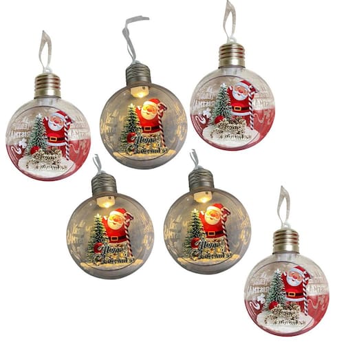 A Bola para árvore de Natal LED Natalina com Papai Noel é a decoração perfeita para tornar seu Natal ainda mais encantador! Com um design criativo e iluminado, essa bola possui um formato de lâmpada e traz a figura adorável do Papai Noel, juntamente de uma árvore de natal e um letreiro escrito 'Merry Christmas', criando um ambiente mágico e acolhedor.