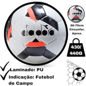 Especificações: Produto contém: 1 uma bola de futebol de campo pro costurada; Modelo: pro costurada; Marca: diadora; Indicação: futebol de campo - grama sintética/natural; Laminado: pu; C/tecnologia tech fusion; Miolo: lubrificado; Lbs: 08/10; Peso aproximado: 430-440g; Circunferência aproximada: 68-70cm;