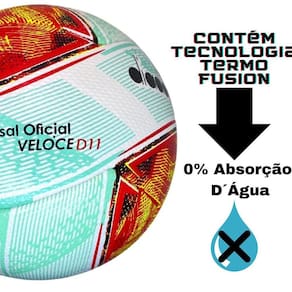 Bola futsal oficial veloce d11 diadora Cor: verdeágua/vermelho/amarelo bola futsal oficial veloce d11 diadora Especificações:Produto contém: 1 uma bola de futsal diadora veloce d11 oficial;Modelo: veloce d11 oficial;Marca: diadora;Indicação: partidas de futsal;Lançamento: 2022/23;Laminado: pvc;Total de gomos: 6;Construção: tech fusion;Câmera: especial;Peso aproximado: 410-450g;Circunferência aproximada: 62-64cm;Válvula: miolo removível/lubrificado;Acabamento: texturizado;Material da câmara: borracha. Obs: a bola de futsal oficial veloce d11 diadora é comercializada cheia. Caso deseje calibra-la para atender as suas necessidades, pode-se usar uma bomba de inflar bolas para o seu enchimento ou esvaziamento parcial ítem não incluso .
