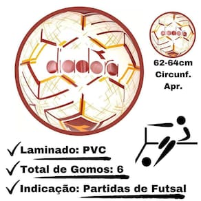 Bola futsal recreativa pvc coloring park diadora Cor: branco/vermelho/laranja Bola futsal recreativa pvc coloring park diadora Especificações:Produto contém: 1 uma bola de futsal pvc diadora;Modelo: bola recreativa de futsal pvc - colorink park;Marca: diadora;Peso aproximado: 400-410g;Circunferência aproximada: 62-64cm;Total de gomos: 6 seis ;Laminado: pvc;Indicação: partidas de futsal;Válvula: miolo fixo;C/tecnologia tech fusion. Obs: a bola de futsal pvc diadora é comercializada cheia. Caso deseje calibra-la para atender as suas necessidades, pode-se usar uma bomba de inflar bolas para o seu enchimento ou esvaziamento parcial ítem não incluso .