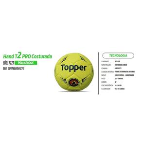 Bola Handebol Topper Hand T2 Pro CosturadaChegou a hora de mostrar suas jogadas com a bola de Handebol Topper Pro T2.Seu design e cor proporcionam maior nacionalidade ao produto, permitindo que você mostre seu estilo e habilidades dentro das quadras.Características:- Laminado: PU - PVC- Construção: Costurada a Mão- Câmara: Airvility - Camada Interna: Forro 3x Borracha Natural- Miolo: Substituível - Lubrificado- Peso: 325 - 390 gr- Gomos: 32- Circunferência: 54 - 56 cm- Calibragem: 04 - 05 LibrasOBS: A bola pode vir com a calibragem alterada.