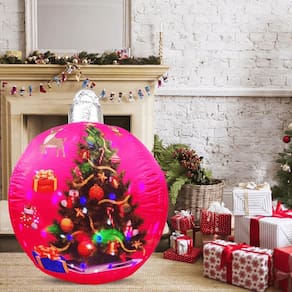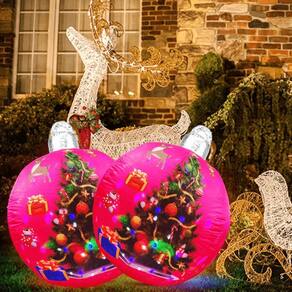 Iluminação LED Integrada: Adicione brilho à sua decoração, seja em ambientes internos ou externos. Fácil de Inflar: Equipado com bomba de enchimento acoplada para ligar na tomada, mantendo a bola sempre inflada. Versatilidade: Decoração ideal para qualquer ambiente, do quintal ao interior da sua casa. Material Resistente: Fabricado em poliéster, garantindo durabilidade mesmo em uso externo. Design Sofisticado: Cor predominante rosa, agregando elegância à sua decoração natalina.