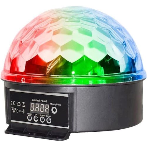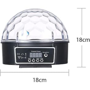 Controle Integrado com display para manusear e acompanhar as informações da Bola Maluca. Pode ser programado facilmente pelo painel frontal para ser ativado conforme o ritmo da música e também para uso no modo automático. Para uso mais profissional também tem sistema DMX de controle de funções.