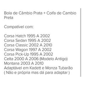 Bola manopla cambio + coifa preta corsa sedan 2003 04 a 2010 Bola de câmbio prata + coifa de cambio preta
