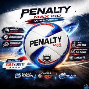 Apresentamos a nova Bola de Futsal Penalty Max 100 Ultra Fusion , que é recomendada para Indicada para categoria Sub 9 e Sub 11 de futsal, uma escolha excelente para jogadores que buscam o melhor desempenho em quadra. Desenvolvida com tecnologia de ponta e materiais de alta qualidade, esta bola eleva o seu jogo para o próximo nível. A Bola de Futsal Penalty Max 100 Ultra Fusion proporciona maciez e conforto durante os toques, chutes e defesas, deixando o jovem confiante para marcar um golaço de bicicleta e ser o craque da partida.