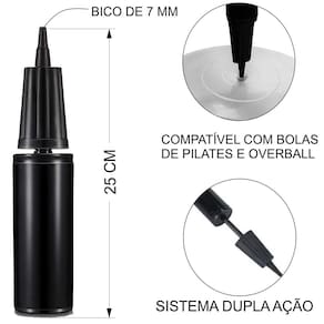 Bomba para encher bola de pilates dupla ação a bomba de ar dupla ação - contem bico de 7mm , e é ótima para inflar produtos como bola suíça para ginástica , entre outros produtos infláveis . A bomba é fabricado com plástico rígido de alta resistência e com padrão internacional de qualidade.